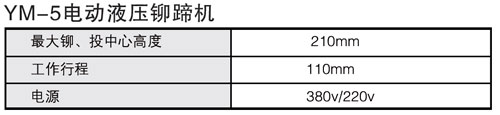 【產(chǎn)品名稱】:YM-5電動液壓鉚蹄機